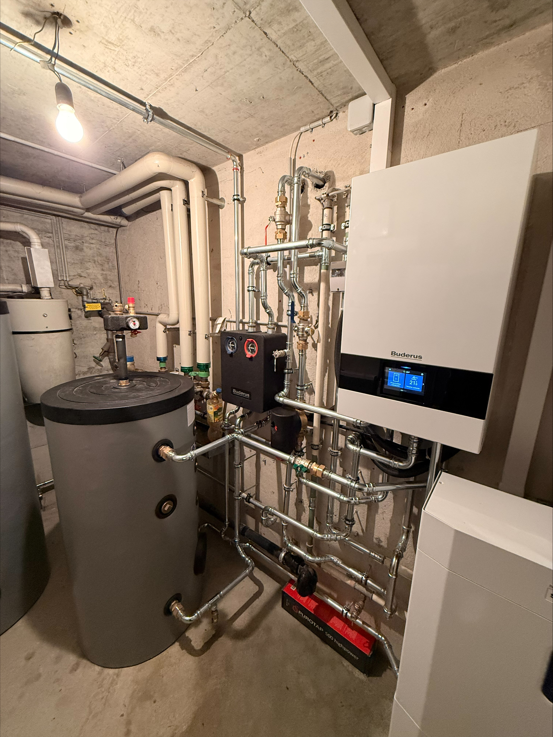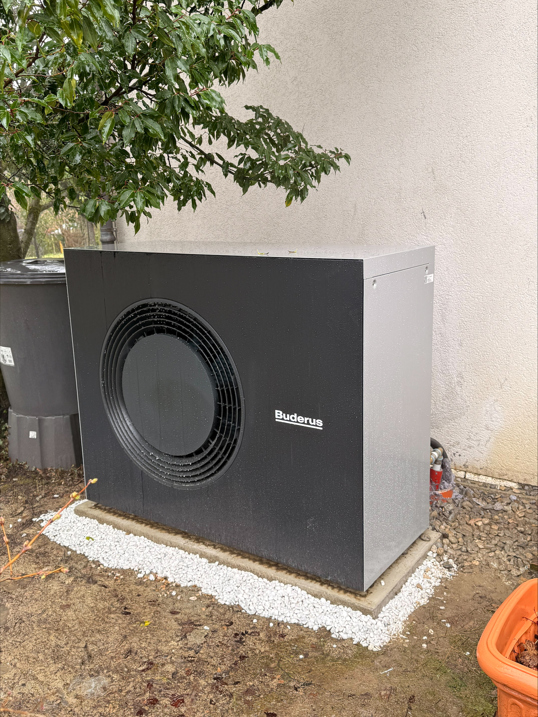 Remplacement d’une chaudière gaz par une pompe à chaleur air-eau Buderus à Lausanne.